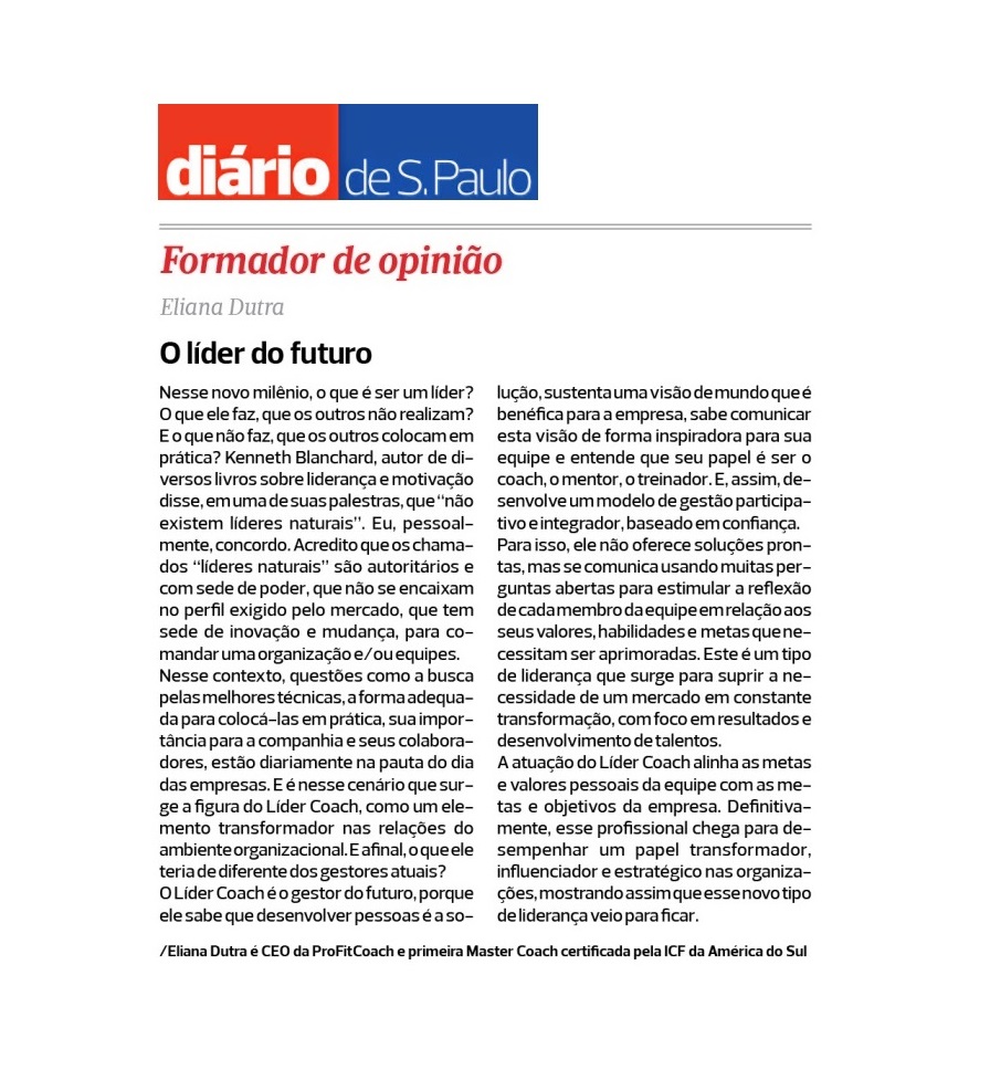 19/06/2017 – A coach, escritora e sócia-diretora da ProFitCoach, Eliana Dutra, estará em Vitória, no dia 22 de junho, para ministrar a palestra “Liderança: O Que o Futuro nos Reserva?”, durante o 28º Congresso Estadual de Gestão de Pessoas (CEARH). Pioneira em coaching e especialista em desenvolvimento de líderes e empresários, ela afirma que o perfil de […]