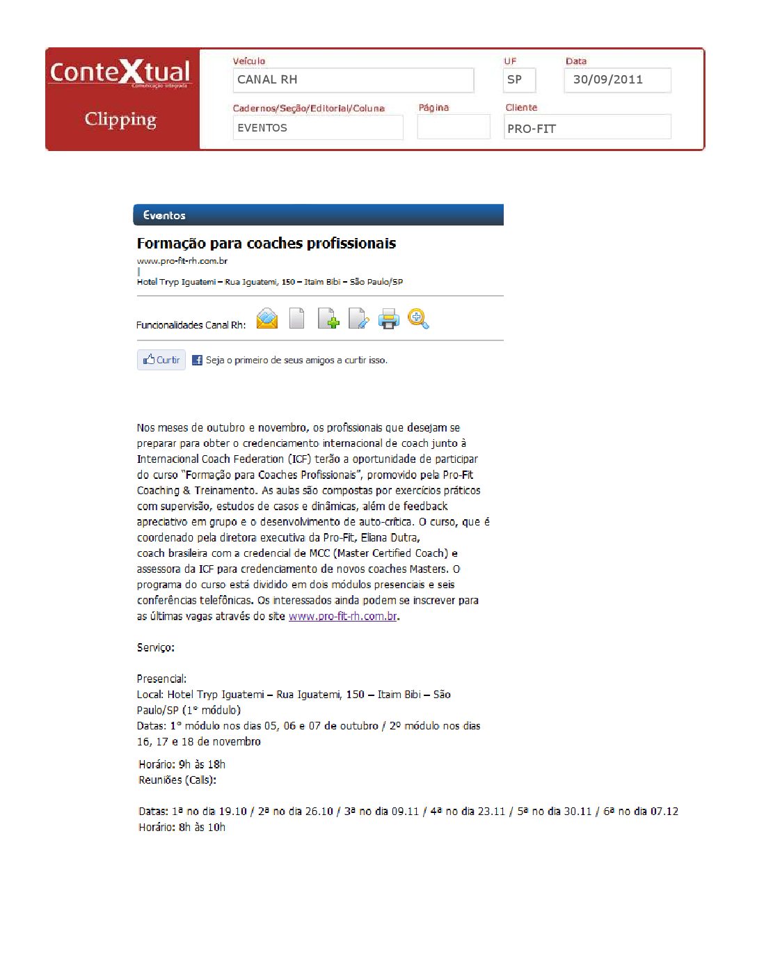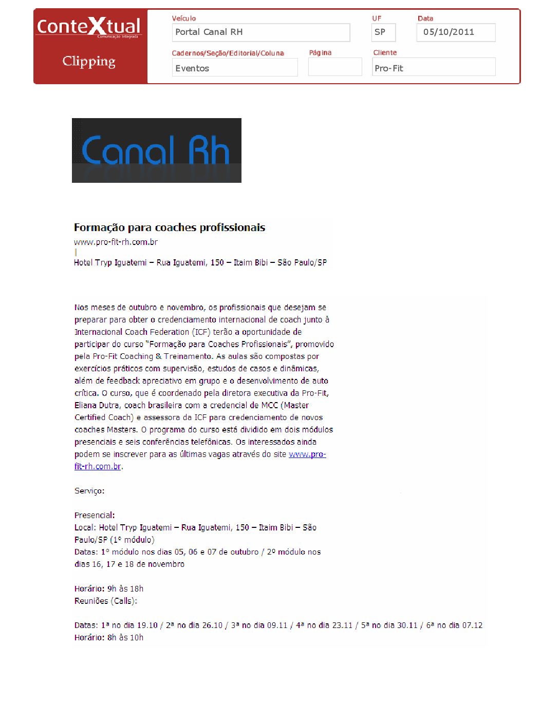 Protal Canal RH – Formação para coaches profissionais – 05/10/2011
