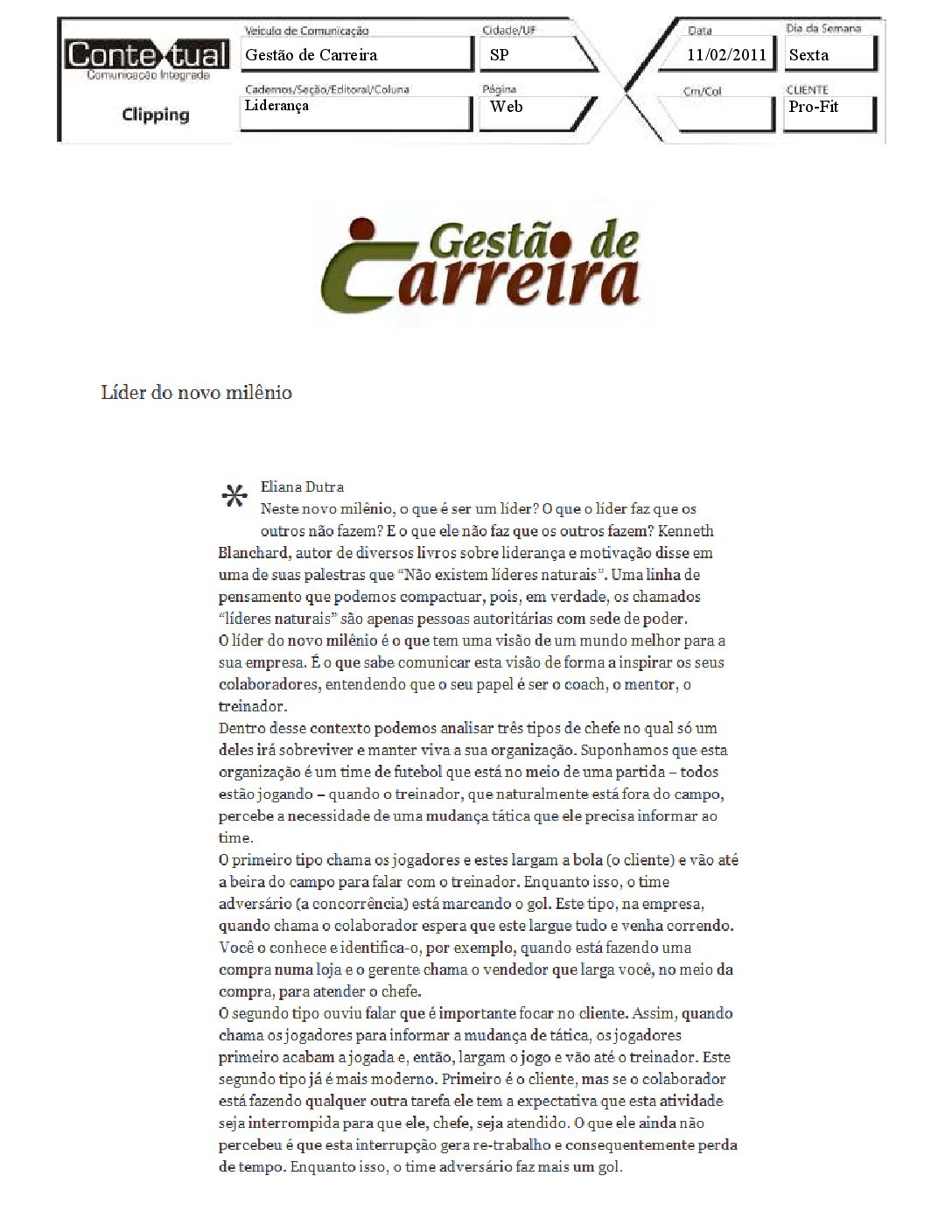 Gestão de Carreira – Líder do novo milênio – 11/02/2011