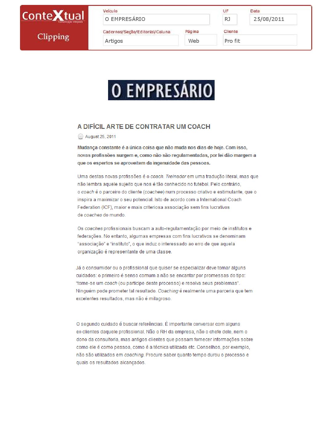 O Empresário – A difícil arte de contratar um coach – 25/08/2011