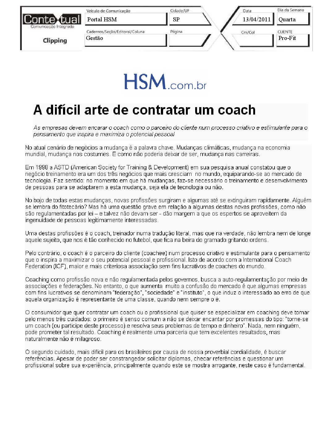 Portal HSM – A difícil arte de contratar um coaching – 13/04/2011