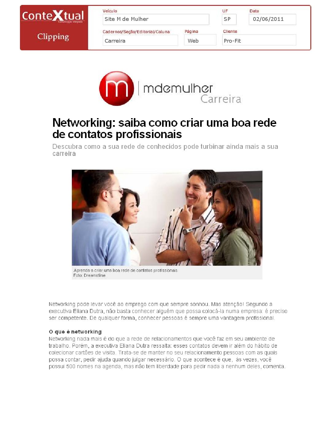 Site M de Mulher – Networking: saiba como criar uma boa rede de contatos profissionais – 02/06/2011