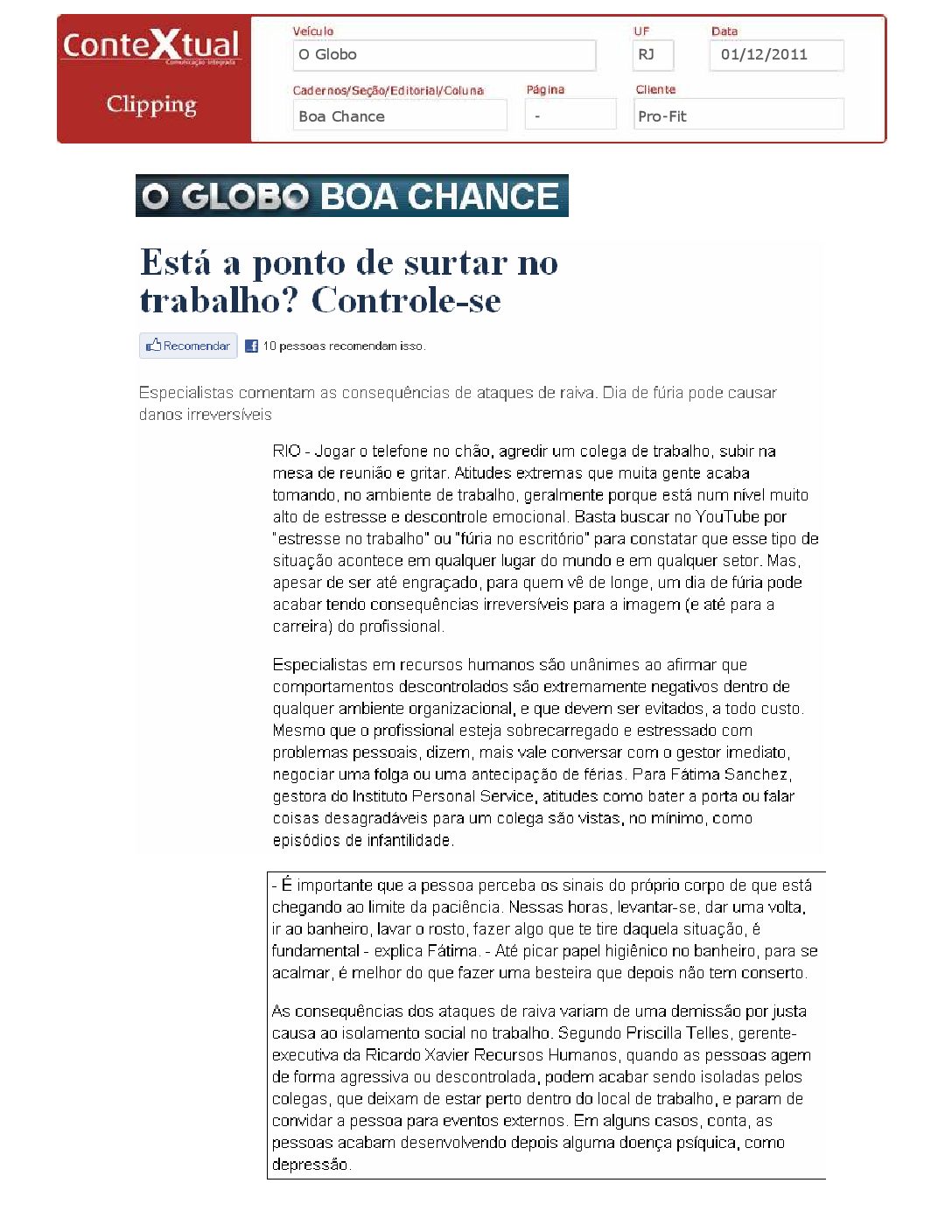O Globo – Está a ponto de surtar no trabalho? Controle-se – 01/12/2011
