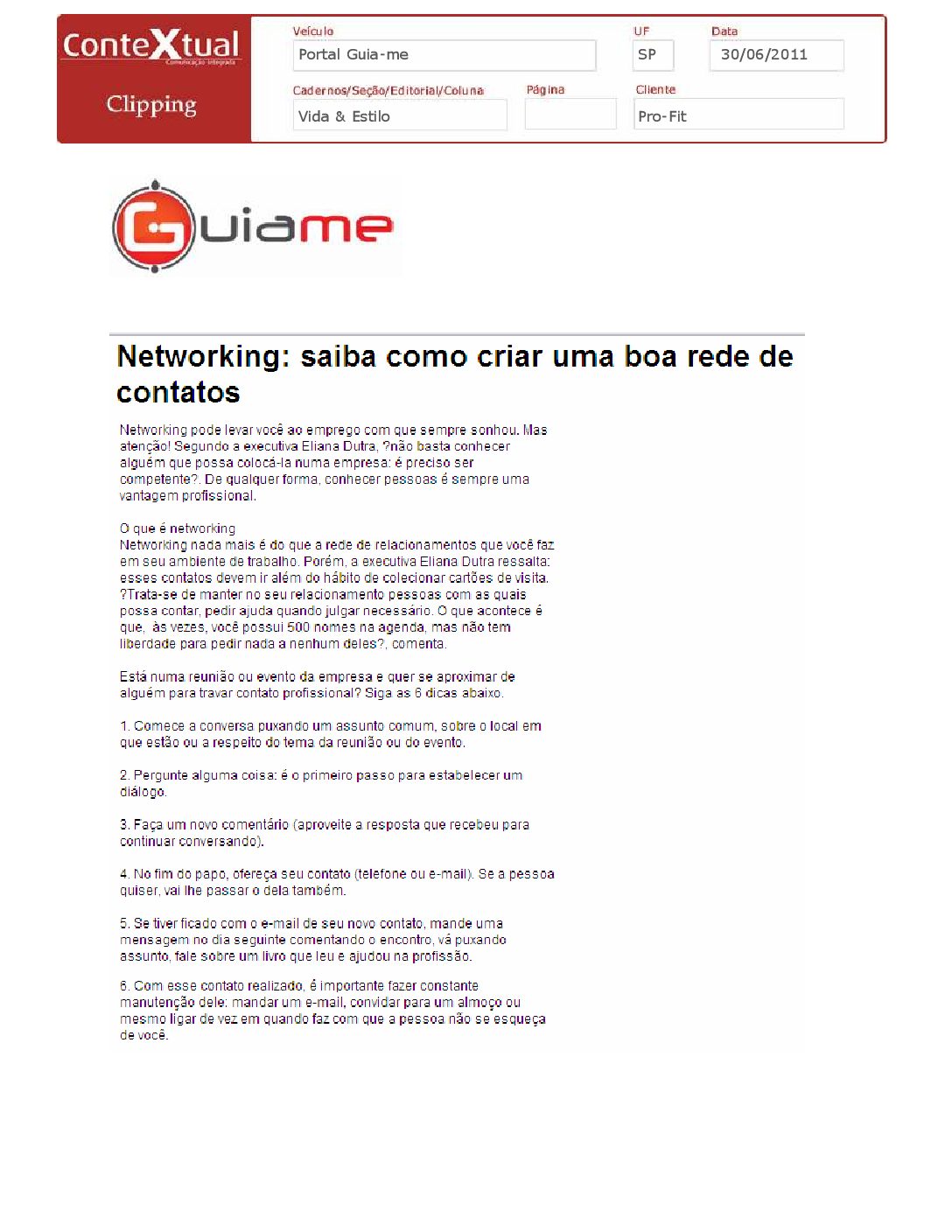 Protal Guia-me – Networking: Saiba como criar uma boa rede contatos – 30/06/2011