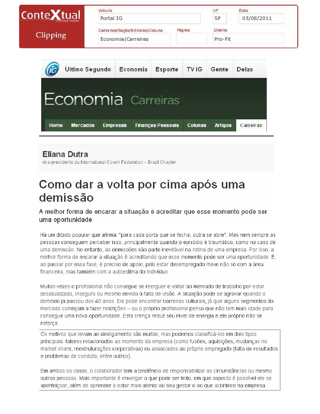 Portal IG – Como dar a volta por cima após uma demissão – 05/08/2011