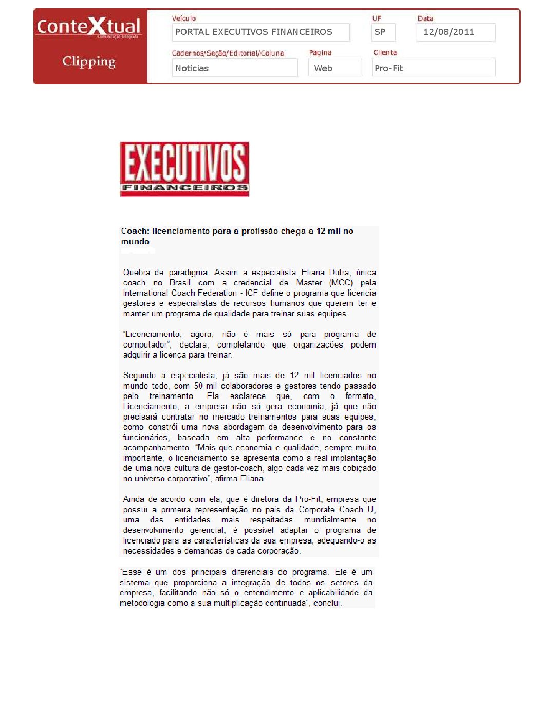 Portal Executivos Financeiros – Coach: licenciamento para a profissão chega a 12 mil no mundo – 12/08/2011