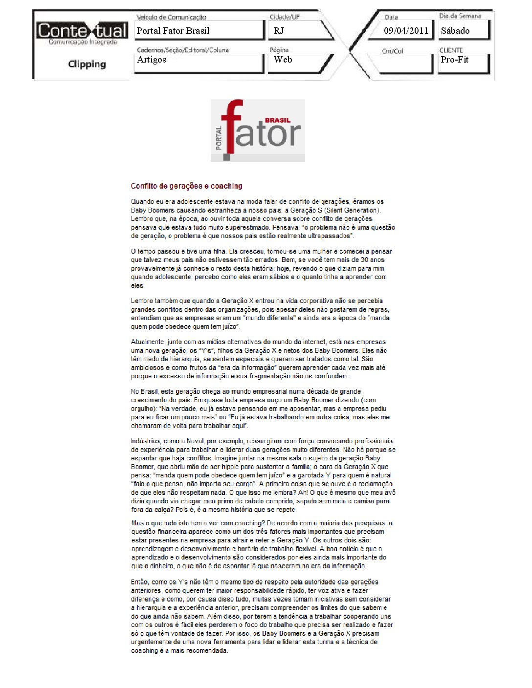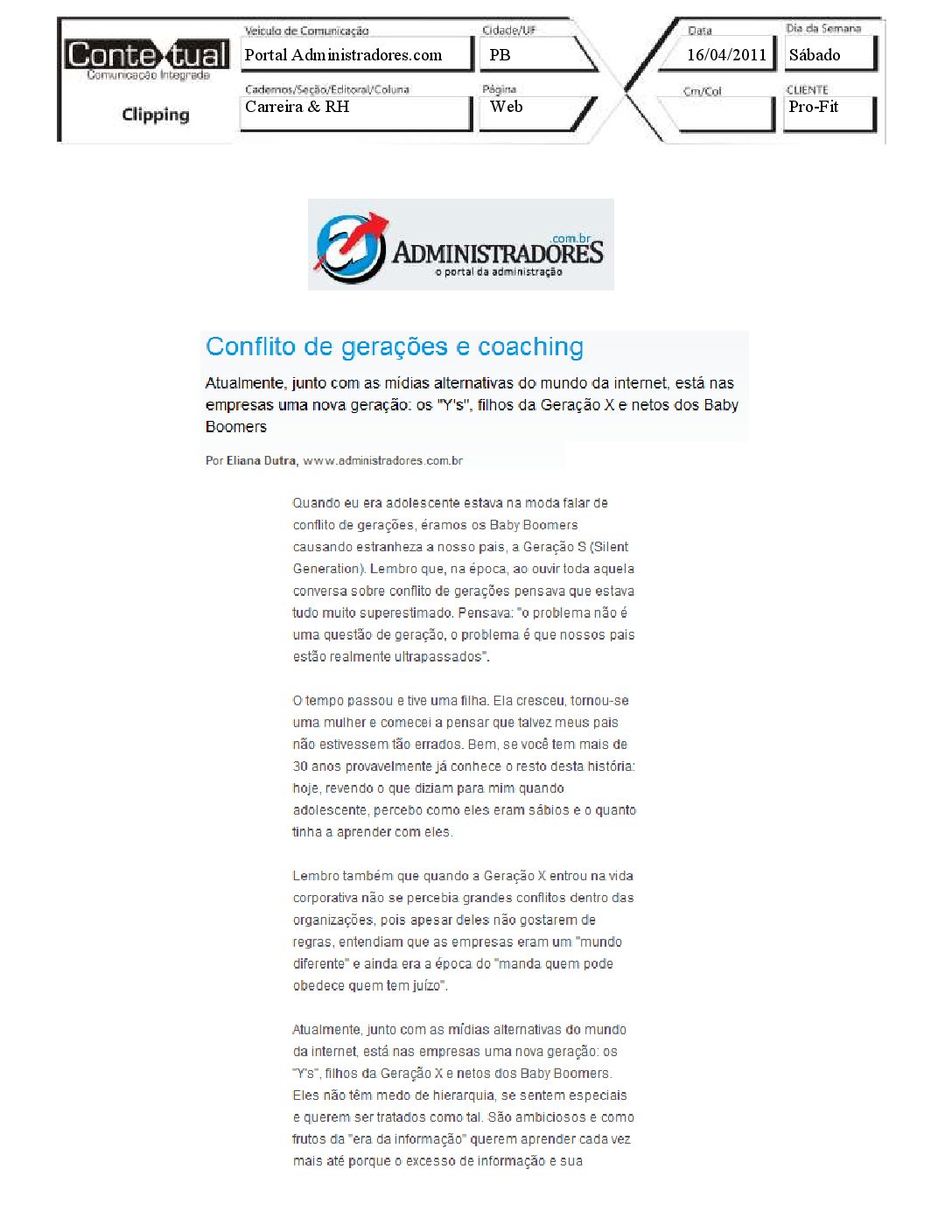 Protal Administradores.com – Conflito de gerações e coaching – 16/04/2011