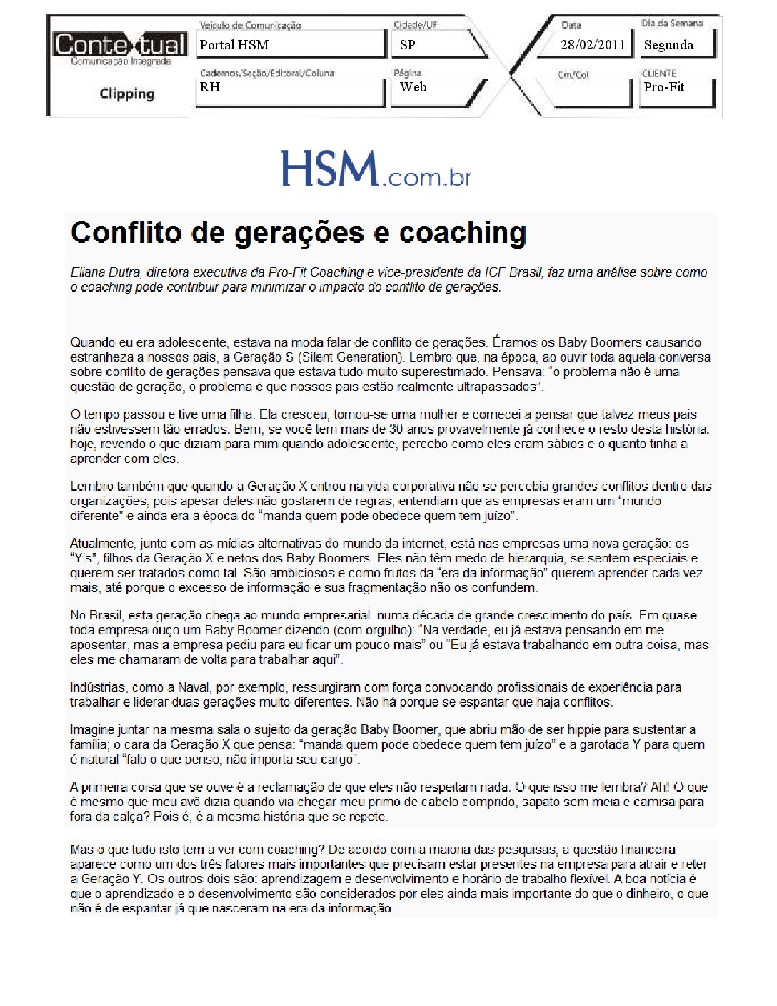 Protal HSM – Conflito de gerações e coaching – 28/02/2011