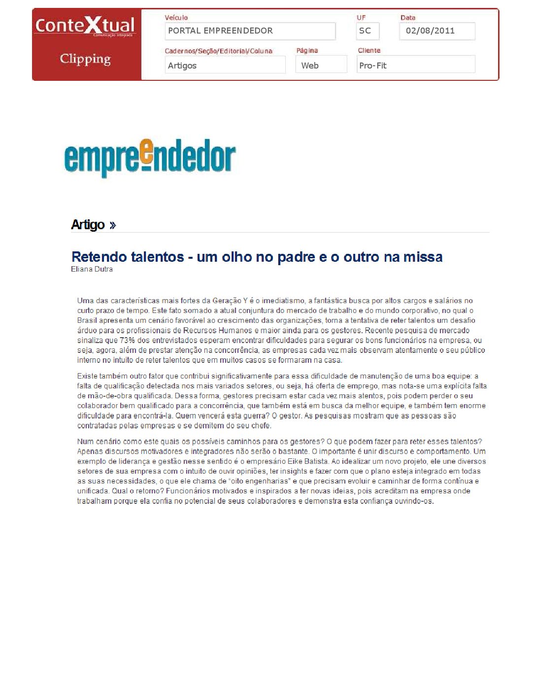 Portal Empreendedor – Retendo talentos – um olho no padre e o outro na missa – 02/08/2011
