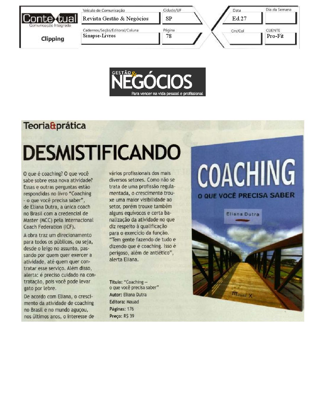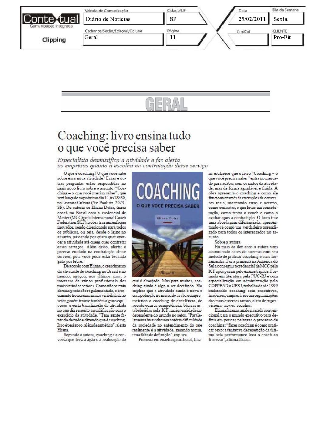 Diario de Notícias – Coaching: Livro ensina tudo o que você precisa saber – 25/02/2011