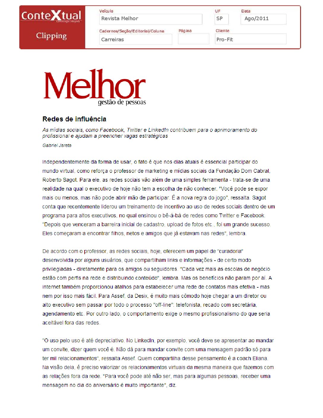 Revista Melhor – Mídias sociais ajudam a preencher vagas estratégicas – 08/2011