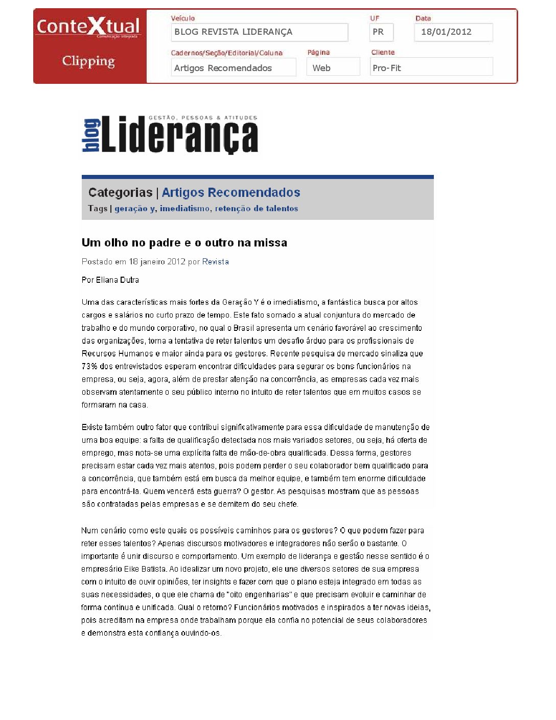 Blog Revista Liderança – Um olho no padre e o outro na missa – 18/01/2012