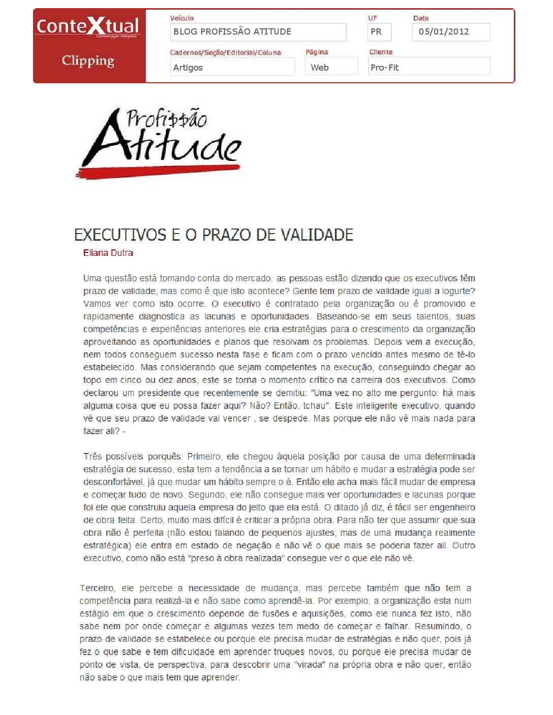 Blog Profissão atitude – Executivos e o prazo de validade – 05/01/2012