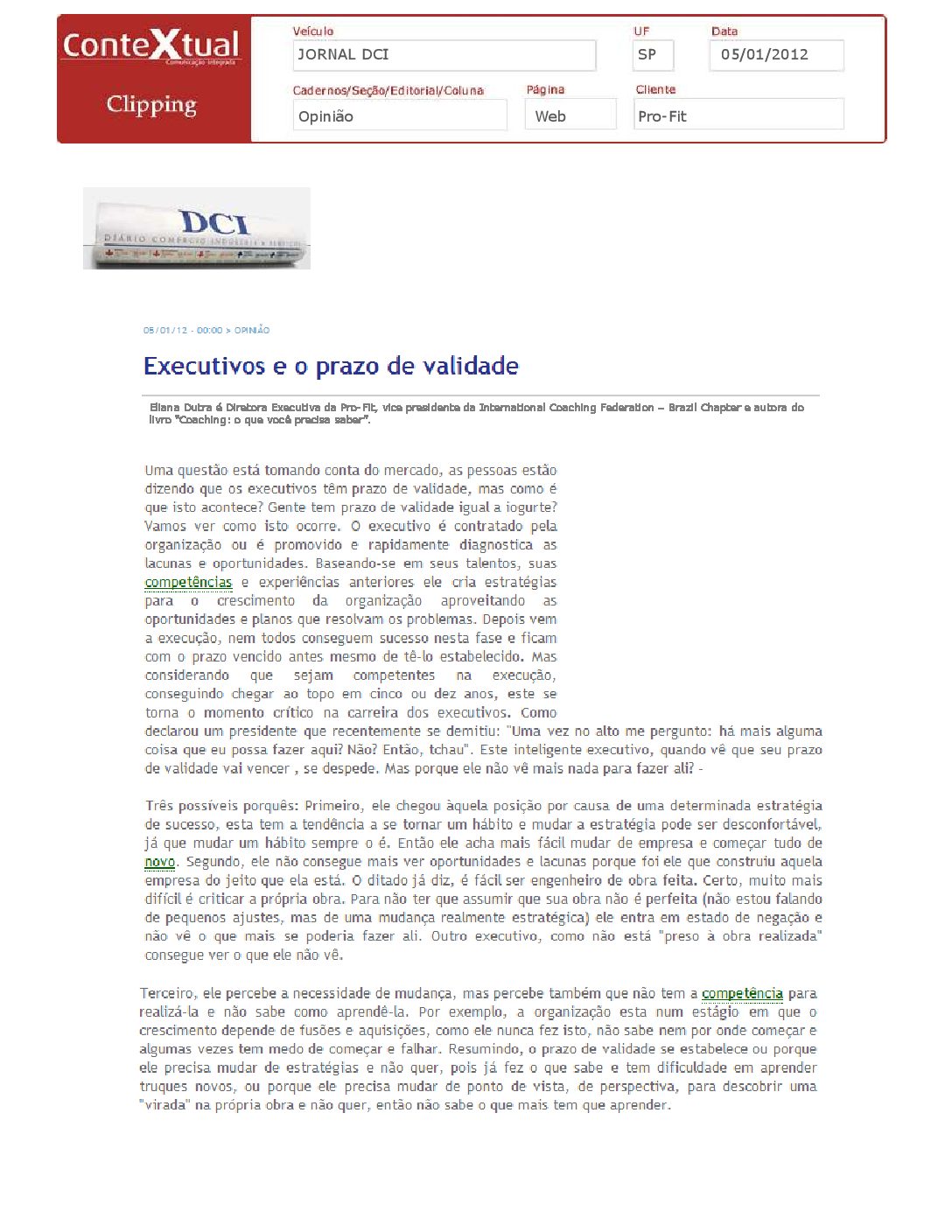 Jornal DCI – Executivos e o prazo de validade – 05/01/2012
